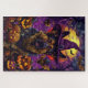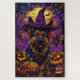 Mit diesem bezaubernden Design, das einen niedlichen Hund in einer Hexe mit geschnitzten Kürbissen schmückt, können Sie das Halloween-Ambiente genießen. Ideal, um Ihren Festlichkeiten eine Touch von spötlichem Charme zu verleihen.