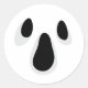 Spooky Aufkleber oder Umschlag Aufkleber mit Augen und Mund eines beängstigenden, weißen Geistes. Ideal für Halloween und andere beängstigende Anlässe.