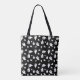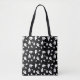 Tragen Sie ein bisschen Halloween-Geist mit dieser Tasche, die einen fett schwarzen Hintergrund mit schlichten, weißen Geist-Silhouetten in verschiedenen Größen verziert. Das minimale Schwarz-Weiß-Design verleiht einem festlichen und spielerischen Muster eine moderne Touch.
