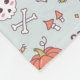 Dieses Design ist ein Halloween-Motiv mit einem skurrilen und spielerischen Design. Die Hintergrundfarbe ist weich pastellblau und mit verschiedenen Halloween-Icons und Symbolen gefüllt.