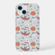 Dieses Design ist ein Halloween-Motiv mit einem skurrilen und spielerischen Design. Die Hintergrundfarbe ist weich pastellblau und mit verschiedenen Halloween-Icons und Symbolen gefüllt.