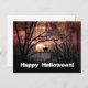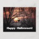Auf dieser Postkarte ist ein phantastisches Bild einer schwarzen Katze zu sehen, die auf einem Baumzweig mit einem spukhaften Hintergrund läuft und ein "glückliches Halloween" wünscht. Eine tolle Art Halloween Grüße an Familie oder Freunde zu schicken!