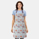 Dieses Design ist ein Halloween-Motiv mit einem skurrilen und spielerischen Design. Die Hintergrundfarbe ist weich pastellblau und mit verschiedenen Halloween-Icons und Symbolen gefüllt.