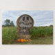 "Spooky Hay Bale" von Catherine Sherman. Ein unheimlicher Heuballen begrüßt die Besucher eines Maislabyrinths in Texas. Eine Reihe von Kürbissen ergänzt die Herbstszene.