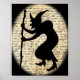Schrecklich! Diese einzigartige Hexe auf einem altmodischen Texthintergrund wird Ihr Halloween-Dekor sicher aufpeppen.