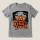 Feiern Sie den Spaß Halloween mit diesem skurrilen T - Shirt! Dieses Design zeichnet sich durch ein glückliches, geschnitztes Kürbiskürbis-Set gegen einen hellen Vollmond und einen Himmel voller fliegender Fledermäuse aus. Das feine "Trick or Treat", das vorn steht, macht es zum perfekten Shirt für alle Ihre Oktoberfestlichkeiten. Egal, ob Sie zum Halloween-Party gehen, einen Kürbispflaster besuchen oder eine Nacht lang Süßigkeiten sammeln möchten, dieses komfortable Tee ist eine gute Möglichkeit, Ihre Liebe für die Saison zu zeigen.