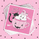 Niedlich rosa Halloween-Papierserviette mit einem whimsical Geist in einer Tasse und einer schwarzen Katze, die sich dahinter versteckt. Es kann mit Ihrem Text und Namen personalisiert werden. Das nicht beängstigende Design macht es zu einem idealen Ort für ein kinderfreundliches Party. Vergiss nicht, eine Größe zu wählen. © ArianeC Illustrations-Alle Rechte vorbehalten