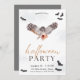 Planen Sie ein elegantes und elegantes Halloween-Party mit dieser unheimlichen Uhu-Party Einladung. Es hat handgemalte Eule. Personalisieren Sie die Textvorlage mit Ihren Party-Daten.