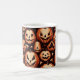 Eine festliche Halloween-Tasse mit einem spielerischen Muster geometrischer Jack-o'-Laternen. Ideal, um Ihren Halloween-Feiern eine Touch von unheimlichem Charme zu verleihen.