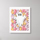 Dieses lustige und festliche Halloween-Design bietet eine klassische Ghost-Illustration vorne und Mitte, umgeben von dem Wort "Spooky" wiederholt in einem kühnen, blubbly Schriftart. Der Text ist in lebhaften, im Retro-inspiriert Farben wie weichen Pinks, Purples und Orangen überlagert, was einen spielerischen Kontrast zu der schlichten weißen Figur des Geistes schafft. Die ausdruckslosen schwarzen Augen des Geisters verleihen dem Design eine Touch unheimlichen Charmes, während die gewölbte, gestapelte Typografie dem Design ein fromes, nostalgisches Ambiente verleiht.