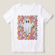 Dieses lustige und festliche Halloween-Design bietet eine klassische Ghost-Illustration vorne und Mitte, umgeben von dem Wort "Spooky" wiederholt in einem kühnen, blubbly Schriftart. Der Text ist in lebhaften, im Retro-inspiriert Farben wie weichen Pinks, Purples und Orangen überlagert, was einen spielerischen Kontrast zu der schlichten weißen Figur des Geistes schafft. Die ausdruckslosen schwarzen Augen des Geisters verleihen dem Design eine Touch unheimlichen Charmes, während die gewölbte, gestapelte Typografie dem Design ein fromes, nostalgisches Ambiente verleiht.