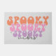 Dieses Design zeigt die Phrase "Spooky Spooky Spooky Vibes" in einem kaskadierten, gestapelten Format angeordnet. Das Wort "Spooky" wird dreimal wiederholt, jeweils in einer anderen Farbe - beginnend mit einer lebhaften Orange, der Übergang zu einem weichen Rosa und der Abschluss mit einem pastellfarbenen lila. Die Buchstaben sind dick und abgerundet und verleihen ein spielerisches und bläsernes Erscheinungsbild, das sich im Kontrast zum sprichwörtlichen Thema befindet. Das Wort "vibes" wird unten in einem zarten, schwarzen, kursiven Schriftart geschrieben, der dem Gesamtdesign eine stilvolle Touch verleiht. Kleine Sternakzente umgeben den Text und verstärken die skurrile und festliche Stimmung. Dieses Design ist perfekt für einen lustigen und leidenschaftlichen Halloween-Abend.