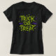Feiern Sie mit diesem auffälligen Halloween-T - Shirt "Trick or Treat" die lustige Jahreszeit. Dieses Design mit lebhaften grünen und lila Schriften und spielerischen Star-Akzenten vereint den Spaß und die Spannung der Halloween-Nacht. Dieser T - Shirt ist perfekt für Trick- oder Behandlungstouren, Halloween-Partys oder das Hinzufügen einer festlichen Touch zum Schrank im Alltag. Er ist ein Muss für jeden Halloween-Fans. Das kühne und skurrile Design hebt sich ab und sorgt dafür, dass Sie überall im Halloween-Geist sind.