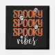 Halloween-Illustration mit "Spooky, Spooky, Spooky vibes" Textdesign und Skulpturen in Weiß, Orange und Schwarz