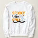 Spooky Vibes Nur Halloween Sweatshirt Moderne Familienausführung Halloween Shirt Design bietet "Spooky Vibes Only Halloween" Text in Orange und Weiß Schrift mit einem kleinen Geisterakzent. Bestellen Sie für jedes Mitglied Ihrer Crew.