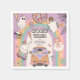 Retro Spooky Vibes Halloween-Party Napkins - Lass uns Groovy holen! Das Design zeichnet sich durch einen farbenfrohen Hintergrund mit einem bohenhaften Regenbogen aus. Coole Retro-Illustrationen schmücken die schlichte Vorlage mit bezaubernden Hippie-Gespenstern, Schädel-Blume, spukhafter Diskokugel und spoktaculärer Bonbons.