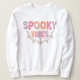 Dieses lustige und festliche Halloween-Design enthält den Satz "Spooky Vibes" in einem spielerischen, tropfenden Schriftart, der dem Text einen gooey, unheimlichen Effekt verleiht. Die Wörter sind in sanften Pastelltönen in Rosa, Orange, lila und Pfirsichfarben gehalten und fügen dem sprichwörtlichen Thema eine leicht gemachte und skurrile Drehung hinzu. Unter dem Text fügt eine einfache Spinnennetz-Illustration in sanft brauner Farbe eine klassische Halloween-Touch hinzu und bindet das Design zusammen. Die Kombination aus Pastellfarben und sprichwörtlichen Elementen schafft einen niedlichen und etwas gruseligen Kontrast, der sich perfekt zu Halloween eignet
