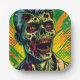 Teller aus Halloween-Party. Beängstigender verfallener Zombie in einem Pop Comic Buch Stil ai art. Cool für Halloween oder jeder, der Zombies Lieben.