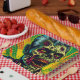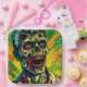 Teller aus Halloween-Party. Beängstigender verfallener Zombie in einem Pop Comic Buch Stil ai art. Cool für Halloween oder jeder, der Zombies Lieben.