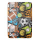 A bold, energetic sports collage featuring basketball, football, soccer, tennis, and baseball elements with dynamic typography like “Big Game,” “Goal Time,” and “Winner,” set in bright, high-contrast colors.