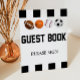 Dies ist ein sportthematisches Gästebuchschild. Es beinhaltet Fußball, Baseball, Basketball und Fußball. Babydusche Dekorationen, Geburtstagsgeschmack, Party-Schilder, Gästebuch, Tischdekoration, Babydusche