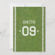 Sports 9th Birthday Party Invitation pour votre enfant étoilé ! Le numéro 9 est composé de balles de football, de balles de football, de basket et de balles de golf sur un arrière - plan d'herbe verte. Le design se poursuit sur le dos qui ressemble à un maillot avec son nom et son âge d'anniversaire. Vos amis et votre famille auront certainement un ballon à cette fête d'anniversaire.