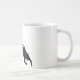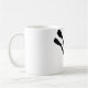 Diese Tasse wird mit einer Silhouette eines UNTERWASSERATEMGERÄT-Tauchers verziert, der zu einer größeren Tiefe absteigt, die einen Strom der Blasen schleppt.