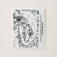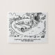 Zwei Menschen in einem Sportwagen stehen kurz davor, auf einen riesigen Igel zu treffen. Funny Cartoon Puzzle von dem britischen Karikaturisten Nigel Sutherland.
