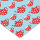 Niedliches illustriertes Muster eines rot-weiß-fleckigen Teekopfes und Teacup-Set auf hellblauem Hintergrund.