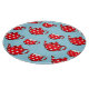Niedliches illustriertes Muster eines rot-weiß-fleckigen Teekopfes und Teacup-Set auf hellblauem Hintergrund.