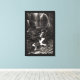 Schwarz-Weiß-Foto des unteren Teils des Wasserfalls, Spray Falls, in Mount Rainier National Park. Das Wasser fließt vom Rand einer Klippe. Die Wasserströme gehen bis zum Fuß der Klippe hinunter. Die einzelnen Wasserläufe vereinigen sich dann und drehen sich dann durch und über Felsen bis zum Endziel. Die Basis der Wasserfalllandschaft und des Flussbettes ist mit einer großen Menge von Felsen übersät. Image Copyright ©2023 Kimberly J Tilley. zazzle.com/store/developingnature