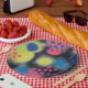 Set von acht 9" Papier Teller mit einem Bild von fett und bunt Spritzlackierung. Siehe dazu passende Süßigkeiten, Espressotasse, Kolben, Krug, Teekanne und Untersetzer. Sehen Sie sich die gesamte Kollektion von Tubular 80er Plate im NAHRUNGSMITTEL/BEV an. | Abschnitt Geschirr.