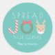 Dieser niedliche und lustige Weihnachtsaufkleber "Spread joy not keims" mit einem Süßkarren, einem Grünkranz mit einem Band und einem Rentier mit einer Gesichtsmaske auf türkisblauem Hintergrund. Personalisieren Sie es für Ihre Bedürfnisse. In meinem Geschäft finden Sie passende Produkte.