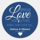 Moderne Verbreitung der Liebe nicht Keime Gastgeschenk Hochzeit Aufkleber für personalisierte Hand-Sanitier Gefälligkeiten . Personalisieren Sie die klassisch blauen Gastgeschenk Hochzeiten mit Braut- und Bräutigam-Namen und Hochzeitstag.