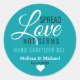 Moderne Verbreitung der Liebe nicht Keime Gastgeschenk Hochzeit Aufkleber für personalisierte Hand-Sanitier Gefälligkeiten . Personalisieren Sie die modernen blauen Gastgeschenk Hochzeit Tags mit Braut- und Bräutigam-Namen und Hochzeitstag.
