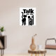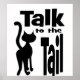 Schwarz-Weiß-Design mit einer schwarzen Katze, die weggeht und rechts "Sprich mit dem Schwanz".