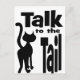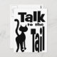 Schwarz-Weiß-Design mit einer schwarzen Katze, die weggeht und rechts "Sprich mit dem Schwanz".