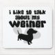 Lustige Dackelprodukte! "Ich mag über mein weiner sprechen" bin ein albernes Hundeliebhabergeschenk. Eine Silhouette des Hundes ist in der Mitte, mit einem Tatzendruck in der Rückseite.