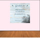 Wunderschönes Plakat in bläulichen Tönen auf einem holzgeschmückten Hintergrund. Ein vietnamesisches Sprichwort über Dankbarkeit wird in Schrift neben der Silhouette eines Baumzweiges gedruckt. Bringen Sie Ruhe, Ruhe und Inspiration zu Ihrem Zuhause oder Büro.