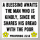 Reads," Ein Segen erwartet den freundlichen Mann, da er sein Brot mit den Armen teilt." Worte der Weisheit aus dem Buch der Sprichwörter 22:9 in der Bibel. Wunderbares Geschenk für Ihren Lieblings-Christlich oder für jeden, der spirituell denkt. Ideal für Geburtstage, Weihnachten, Vatertag, Muttertag oder einen besonderen Tag.