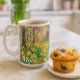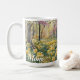 This coffee mug features a digital watercolor of spring blooming daffodils in a naturalized setting with redbud tree blossoms. The phrase "Mom" is subtly placed on the lower right side. Customize this template to add your own personal touch. This charming spring-themed mug makes a thoughtful gift and a lovely addition to any home's decor.