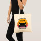 Cool custom road trip tote bag for spring break or summer vacation with your family or friends. Personalize with your last name or group above the retro sunset and car silhouette. Cute keepsake souvenir for a trip to a cottage or across the country. Drive off into the sunset with this shirt.