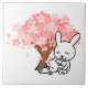 Ein Paar niedlicher Weißbüscheln, die im Frühling unter einer rosa Kirschblüte sitzen. Anpassen durch Ändern der Hintergrundfarbe.