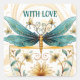 Niedliche, anpassbare und whimsical blau und aqua Libelle mit goldenen Akzenten auf einem Aufkleber oder Umschlag Aufkleber. Frühling themed und dekorativ mit Raum, um Ihre Nachricht an der Spitze dieses Aufklebers anpassen. Viel Spaß!