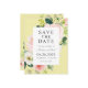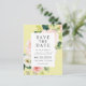 Das hübsche, blumengeschmückte Frühjahrsgebäude ist mit einem Blumenstrauß in Rosa und cremefarbenen Rose mit Grünpflanzen auf pastellgelbem Hintergrund gestaltet. Die Farben sind weich und vermitteln ein Gefühl von Glück. Auf der Kartenrückseite befindet sich eine Fotovorlage, mit der Sie Ihr Foto personalisieren können. Personalisieren Sie die Kartenvorderseite mit Ihren Namen, dem Hochzeitstag und der Stadt, in der Sie verheiratet sein werden.