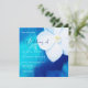 Hochzeitseinladung mit schneeweißer Blume auf hellblauem Wasserhintergrund, aquamarine Aquarellmalerei, luftig gefärbter Frühling oder gepunkteter Blumenhintergrund im Sommer. Weiße Lilie botanische elegante Blütenblüte Hochzeitseinladung. Spring Fondness Collection