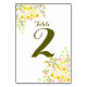 Eine schöne Abbildung schmückt die Tischnummer des Empfangs im Frühjahr oder Sommer. Gelbe und goldene Blume und Knospen, helle Himbeeren, üppige grüne Blätter und ein tiefgrüner, olivgrüner Text auf einem knusprigen, weißen Hintergrund. Moderne Typografie und Styling verleihen zeitgenössischen Charme, während das trendige und fröhliche Gartendesign perfekt für eine Hochzeit im Frühjahr, Sommer oder im Freien ist.