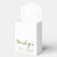 Eine hübsche Gastgeschenk Hochzeit in einem fröhlichen, gelb-grünen Rahmen auf einem knackigen, weißen Hintergrund. Eine originelle Abbildung von Blütenblüten und Grünpflanzen schmückt die obere und die hintere Kiste. Personalisieren Sie Ihren Text, die Braut- und Bräutigamen und das Hochzeitstag. Ideal für Hochzeiten im Freien, im Frühling, im Sommer, im Abend oder im Garten.