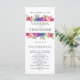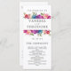 Elegantes botanisches Hochzeitsfeierprogramm mit Ihren Namen und Details mit einem Rahmen von Aquarellgrün-Blätter und hellen Blume in Rosa und Blau und lila. Personalisieren Sie den stylischen dunkelgrauen Text auf beiden Seiten der Karte mit Ihrer eigenen Zeremonie, Hochzeitsfeier, und danken Sie Ihnen den Text der Nachricht. Eine schöne Wahl für elegante Hochzeiten im Freien oder Hochzeiten, die auf dem Land gefeiert werden. Coordiniert zu Spring Lush Hochzeitssammlung Für Hilfe oder individuelle Anfrage kontaktieren Sie uns bitte über den Shop oder schreiben Sie unter citronelladesign@gmail.com