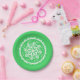 Diese weiße Mandala sitzt auf einem hellen, grünen Hintergrund. Die Farben sind belebend und hell. Teil der Sammlung Bleujenn Mandala.